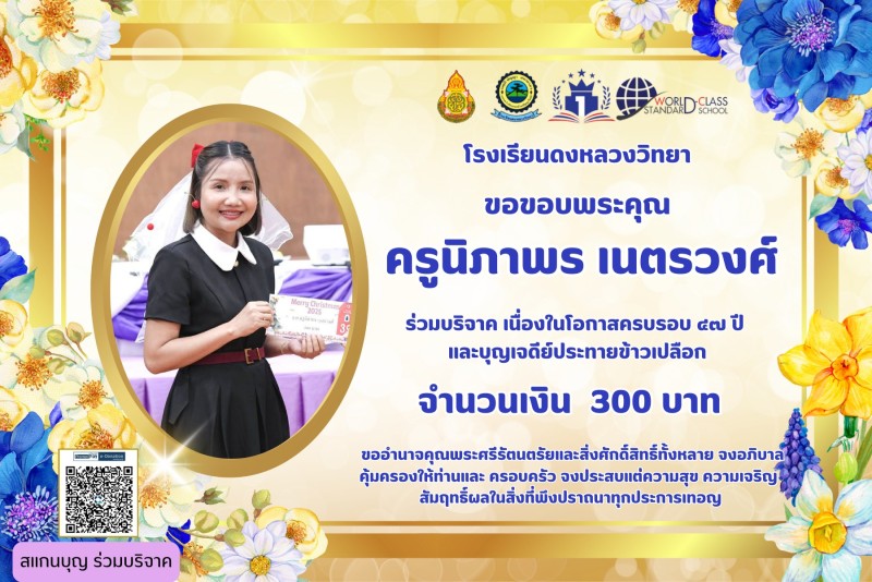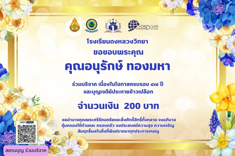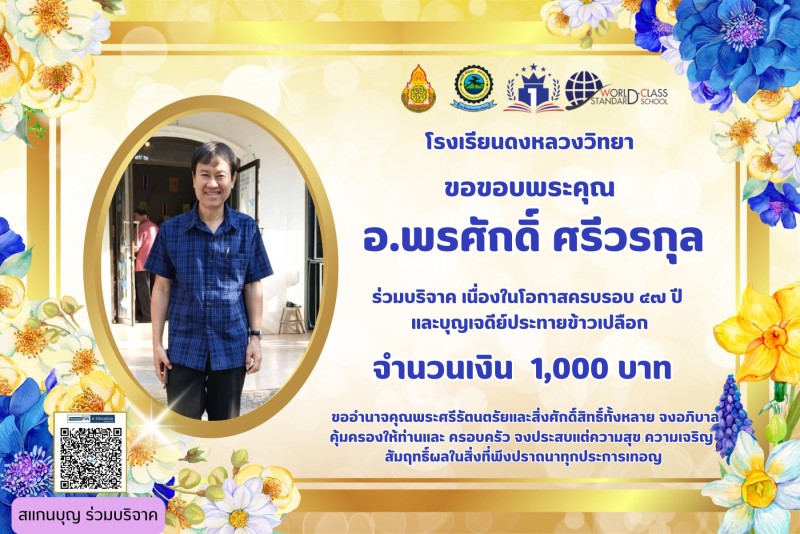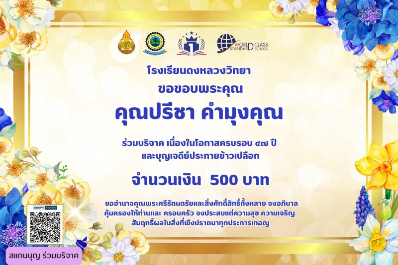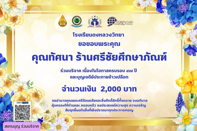 ขอขอบคุณผู้บริจาค เนื่องในวันครบรอบ 47 ปี วันสถาปนาโรงเรียนและบุญเจดีย์ประทายข้าวเปลือก