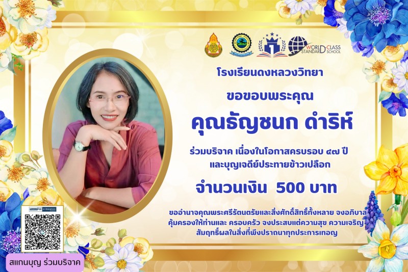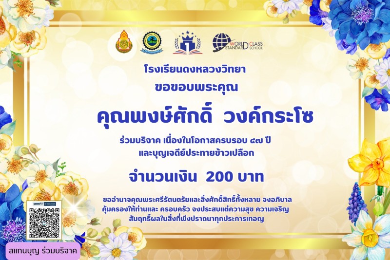 ขอขอบคุณผู้บริจาค เนื่องในวันครบรอบ 47 ปี วันสถาปนาโรงเรียนและบุญเจดีย์ประทายข้าวเปลือก