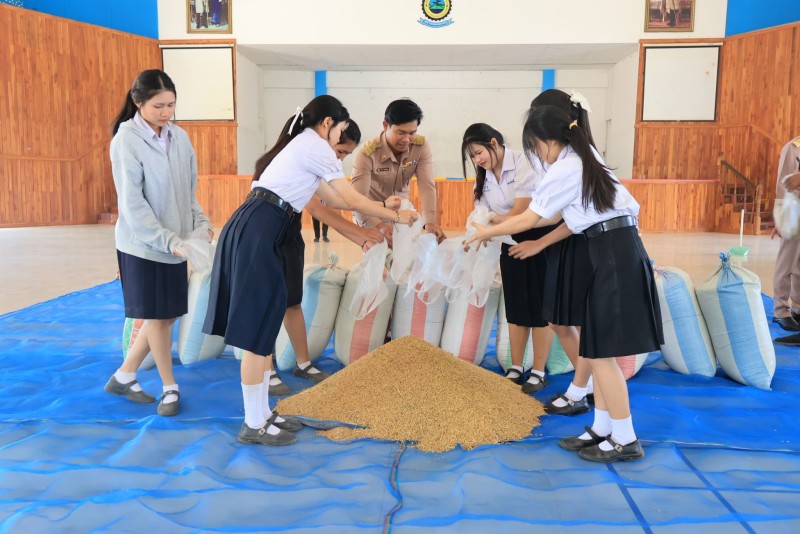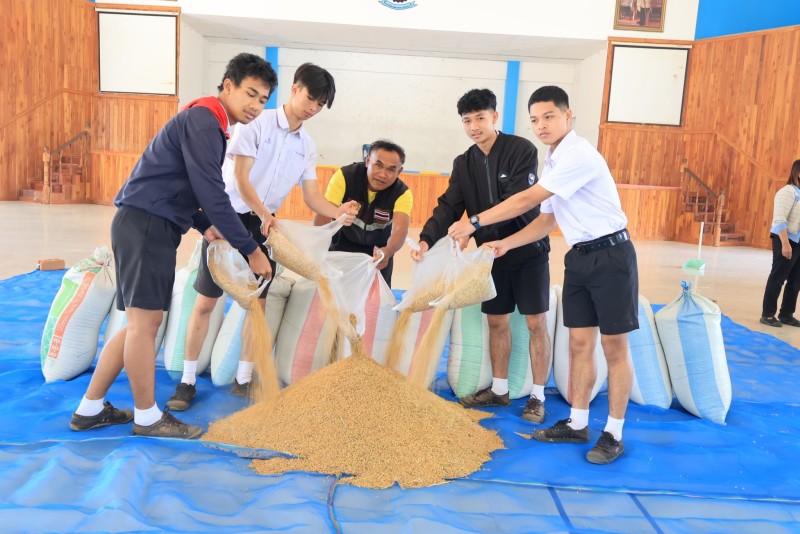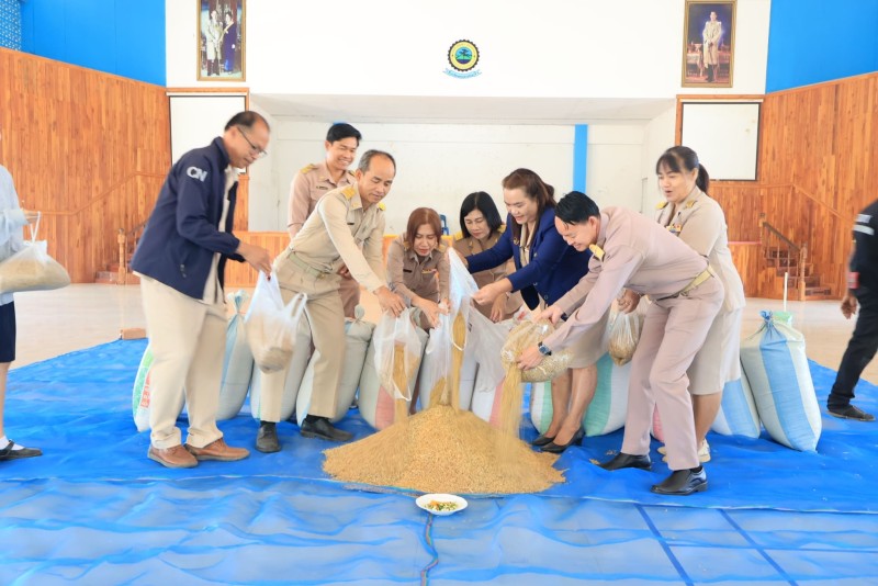 พิธี“เทข้าวเอาฤกษ์เอาชัยรวมใจสร้างกองบุญประทายข้าวเปลือก”