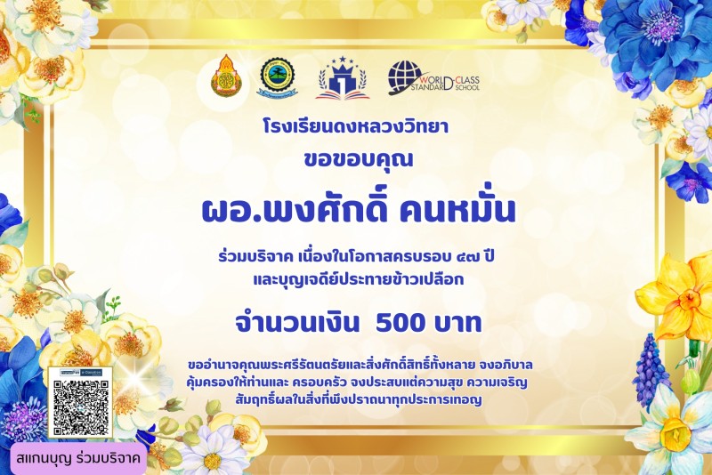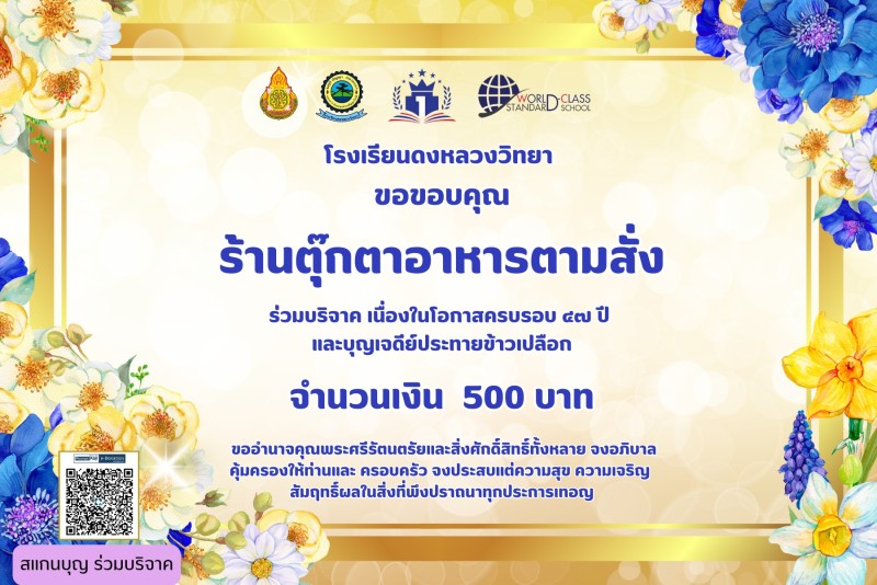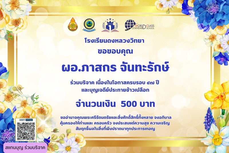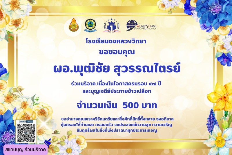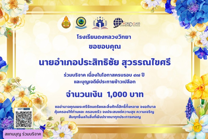 ขอขอบคุณผู้บริจาค เนื่องในวันครบรอบ 47 ปี วันสถาปนาโรงเรียนและบุญเจดีย์ประทายข้าวเปลือก