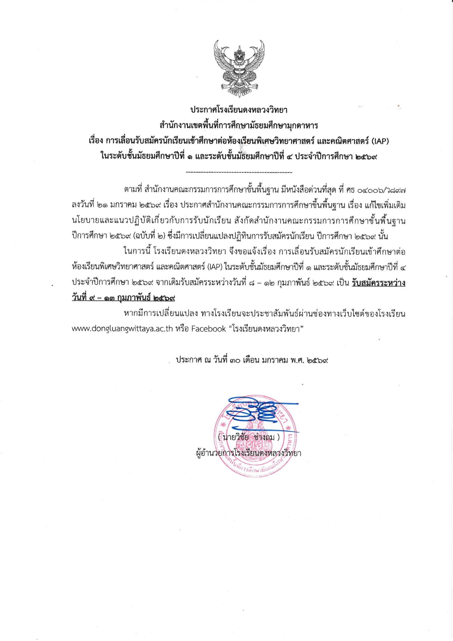 ประกาศ!!!เลื่อนรับสมัครนักเรียนห้อง IAP